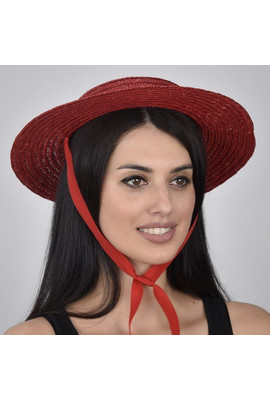 Соломенная шляпка-канотье Ханой красная ШС-114-08