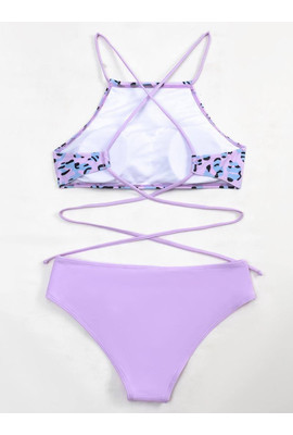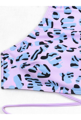 Очень милая и при этом эффектная модель с красивой спинкой. Игривый леопардовый принт в комбинации с нежным лиловым оттенком будет шикарно смотреться на загорелом теле.