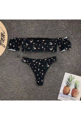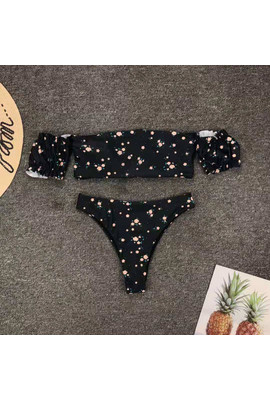 Чёрный купальник в мелкие цветочки 01921 нмбо