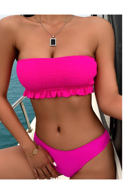 Купальник-бандо из ткани жатка малиновый 172109 нмбо - Интернет-магазин - ELENKA