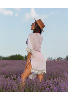 Туника-парео, декорированное кружевом. Ткань: шифон. Размер: норма (S-M-L), батал (XL-2XL). Детали: поясок из шифона.