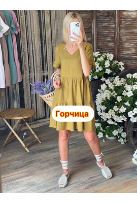 Главная страница Платья Платье свободного кроя из льна 0302 горчица