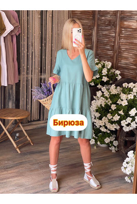 Изображения Бирюзовое платье свободного кроя из льна 0302 - Интернет-магазин - ELENKA