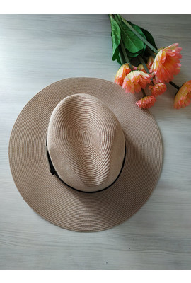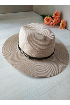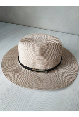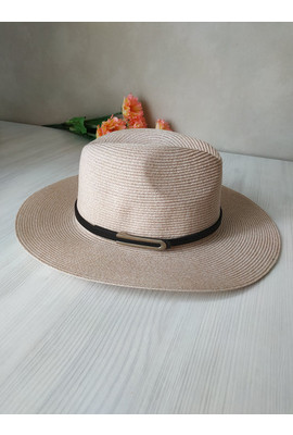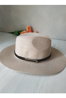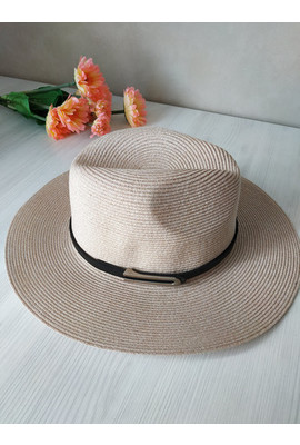 Красивая женская федора с ремешком Одри бежевого цвета 2408
