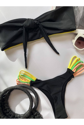 Лиф бандо с завязкой по спинке и съемными поролоновыми вставочками, плавки стринги - это именно тот стильный и практичный купальник, который ты так давно искала.