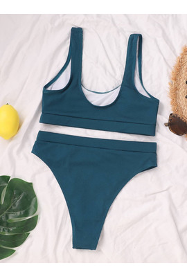 Комфортный топ спортивного кроя с красивым вырезом по груди и плавки высокой посадки, которые идеально подчеркнут линию талии и пикантно округлят попу. Материал: спандекс, полиэстер. Размер: 42; 44; 46. Цвет: изумруд.
