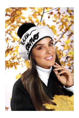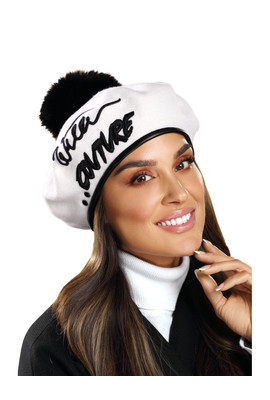 Берет из сертифицированной шерсти WoolMark. Изделие декорировано контрастной черной вышивкой. Все это создает элегантное сочетание. Кепка отделана кожзаменителем черного цвета. Он регулируется, благодаря чему адаптируется к любому размеру головы. Дополнительным украшением является большой натуральный помпон из меха енота.