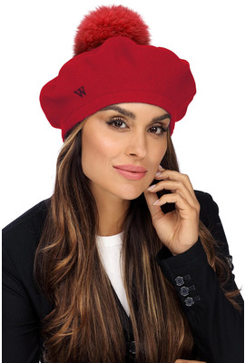 Шерстяной берет с помпоном Флорас (Floras) 001 красный