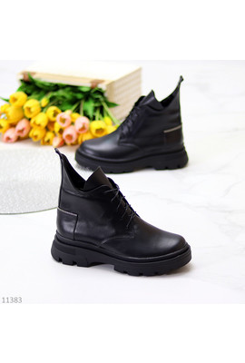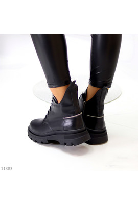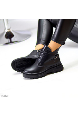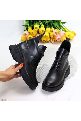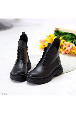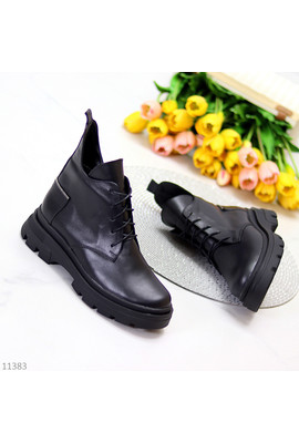 Модельные кожаные черные женские ботинки натуральная кожа на флисе на шнуровке. Код 11383. Размеры 36-40. Ботинки \"RainS\". Материал - Натуральная кожа. Цвет - Черный. Утеплитель - Ворсистый флис. Сезон - Деми. Высота от пятки - 15см. Подошва - 5