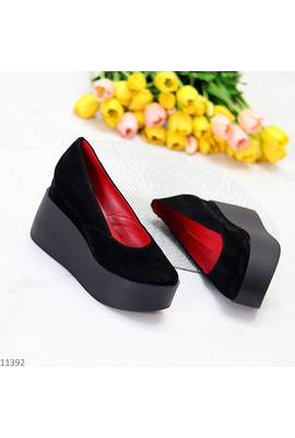 Главная страница Демисезонная женская обувь Черные женские туфли Stone натуральная замша на танкетке 11392 sh