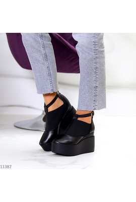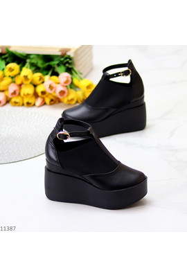 Отзывы Стильные женские черные туфли на платформе натуральная кожа 11387 sh - Интернет-магазин - ELENKA
