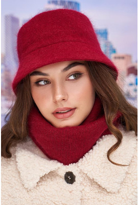 Модный комплект из панамы и снуда бордового цвета 4974-77