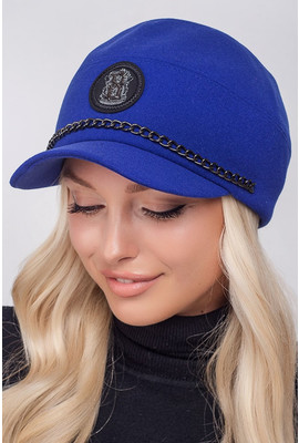 Тёплая кепка из шерсти с ушками София 8318 электрик - Интернет-магазин - ELENKA