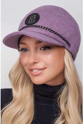 Тёплая кепка из шерсти с ушками София 8318 лиловый