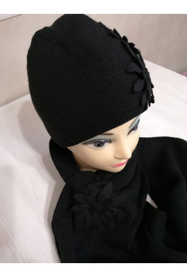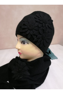 Шапка женская (ABELLA) Элегантная одинарная женская шапка гладкой вязки. Сзади украшена драпировкой складок, придающих объем, сбоку – изящной композицией в виде цветков из флока и помпончиков из натурального меха в цвет шапки. Страна производитель: Пол...
