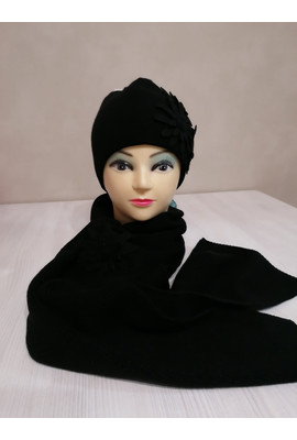 Набор состоит из шапки и шарфа-снуда. Шапка утеплена полоской из флиса. В состав изделия входит люрексовая нить, что придает ему неповторимое сияние. Состав: 39% полиамид, 35% люрикс, 13% мохер,13% полиестер.