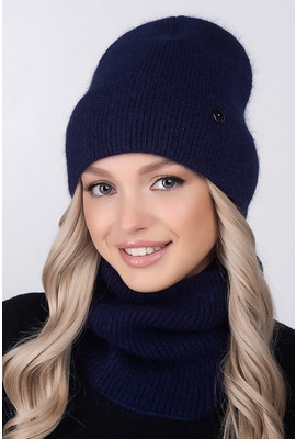 Изображения Тёплый комплект из ангоры Калипсо, шапка+баф тёмно-синий 2025 - Интернет-магазин - ELENKA