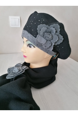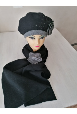 Комплект женский (DANIELA) Двойной берет, украшен цветком из флока и сетки с россыпью страз вокруг. Страна производитель: Польша Фирма производитель: KAMEA Состав: 90% шерсть, 10% полиамид Размер: 56-59
