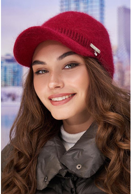 Бордовая теплая пушистая бейсболка Долорес 4955