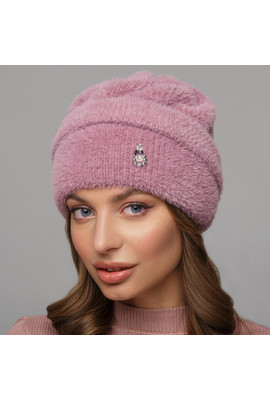 Шапка из пушистой пряжи Зефир сиреневая 0311