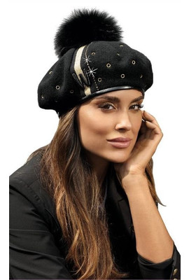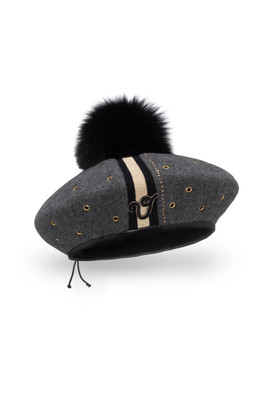 Женский стильный берет из шерсти с подкладкой из флиса. Флисовая подкладка делает изделие комфортным в носке. Украшен строчками из кожзама и фирменной шильдой. Помпон съемный из натурального меха.
