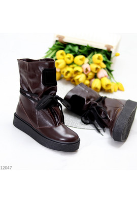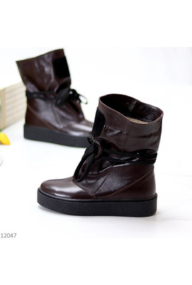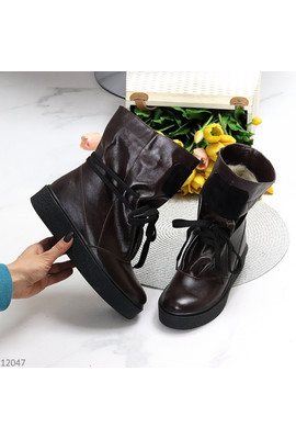 Зимние полусапоги из натуральной кожи L&Rik 12047 шоколад