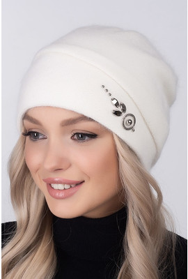 Шапка женская (ABELLA) Элегантная одинарная женская шапка гладкой вязки. Сзади украшена драпировкой складок, придающих объем, сбоку – изящной композицией в виде цветков из флока и помпончиков из натурального меха в цвет шапки. Страна производитель: Пол...