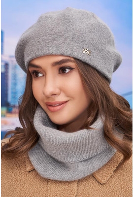 Тёплый зимний комплект Эстель серый, берет и баф 4977-77