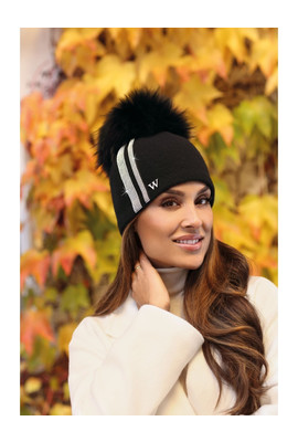 Элегантная чёрная шапка с меховым помпоном Willi Rekiva (Рекива) 018 чёрный - Интернет-магазин - ELENKA