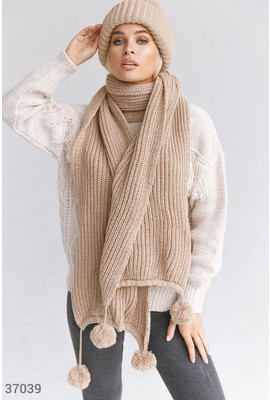 Главная страница Женские шапки Осень-Зима Вязаный комплект бежевого цвета 37039