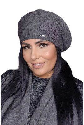 Женский берет с добавлением шерсти - отличное предложение для женщин, ценящих стиль и элегантность. Модель отлично облегает голову, сделана из теплой пряжи с добавлением шерсти. Берет украшен цветами с фианитами.