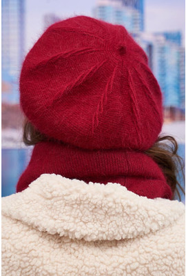 Главная страница Женские шапки Осень-Зима Тёплый зимний берет из пушистой пряжи Эстель бордовый 4977