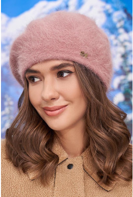 Тёплый зимний берет из пушистой пряжи Эстель цвет тёмная пудра 4977