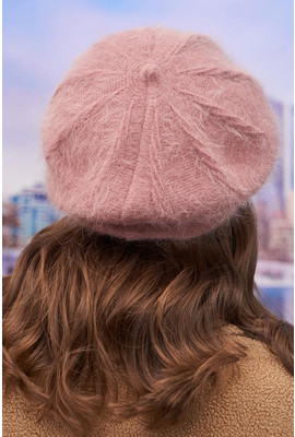 Главная страница Женские шапки Осень-Зима Тёплый зимний берет из пушистой пряжи Эстель цвет тёмная пудра 4977