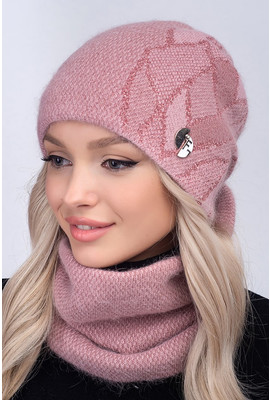 Главная страница Женские шапки Осень-Зима Женский комплект из ангоры Венди цвет тёмная пудра 1080