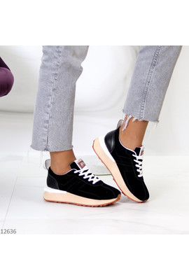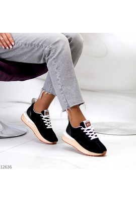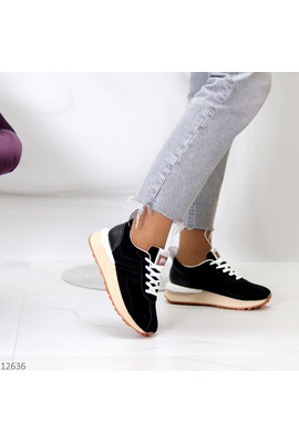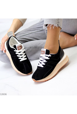 Кроссовки из экозамши Way 12636 чёрные - Интернет-магазин - ELENKA