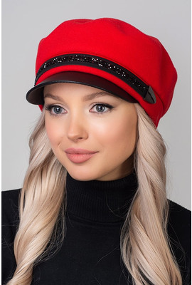 Демисезонная кепи Ника блеск с кожанным козырьком 9803 красная