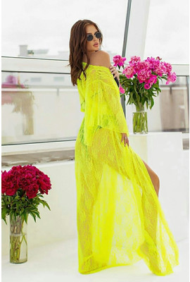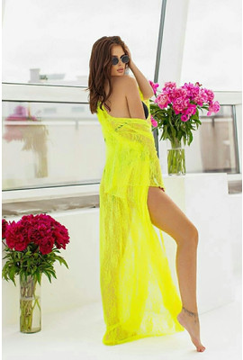 Жёлтая пляжная туника из гипюра в размере 42-48 арт. 9097-1