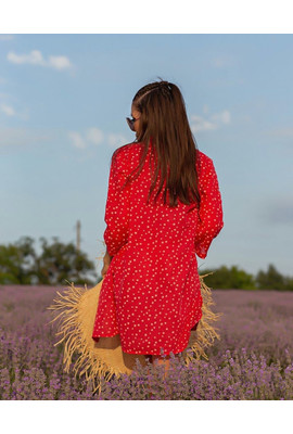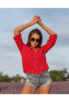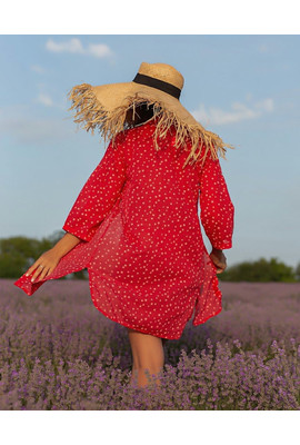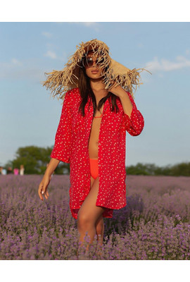 Пляжная туника-рубашка Вуаль Жатка 10151-1 красная в звёздочки