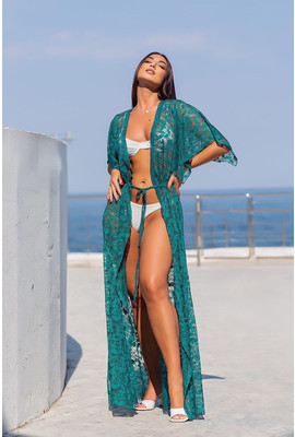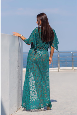 Изображения Женская пляжная туника изумрудного цвета в р. 50-54 Макраме макси 10242 - Интернет-магазин - ELENKA