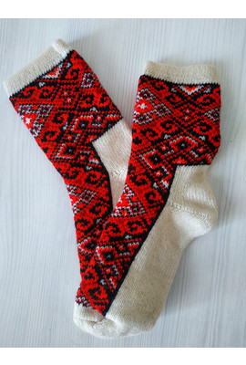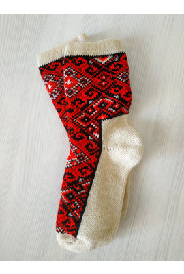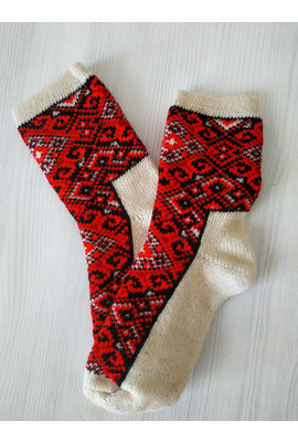 Женские шерстяные носки красный орнамент 2631