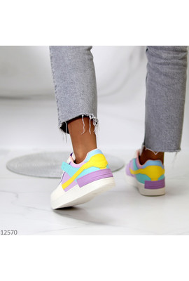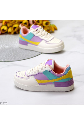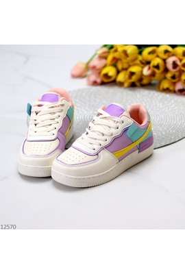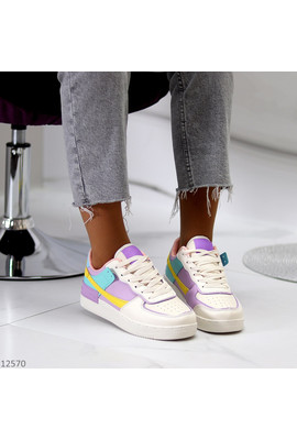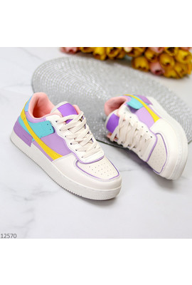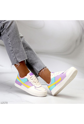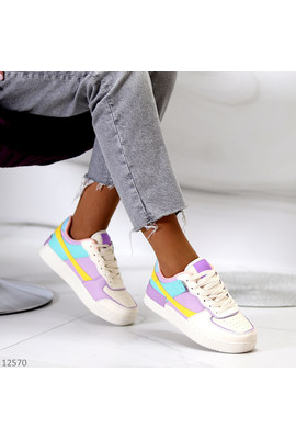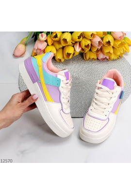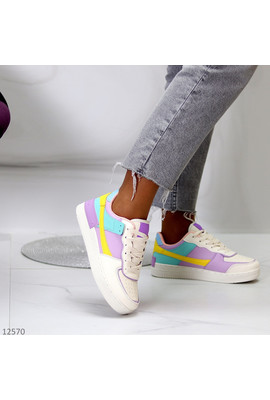 Женские кроссовки из эко-кожи Dawn 12570 светлый беж+сиреневый