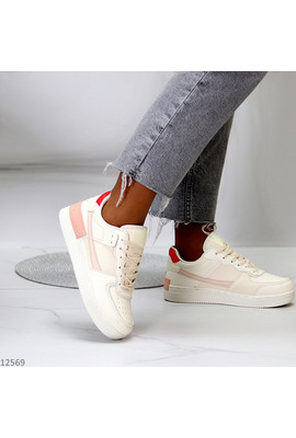 Главная страница Демисезонная женская обувь Женские кроссовки из эко-кожи Dawn 12569 светлый беж+пудра