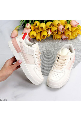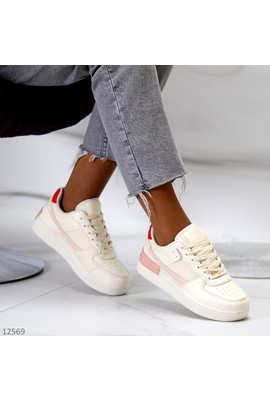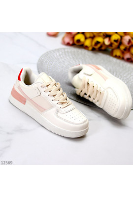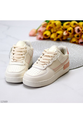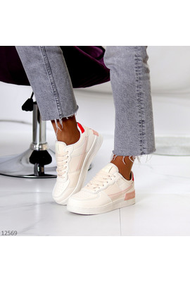 Женские кроссовки из эко-кожи Dawn 12569 светлый беж+пудра