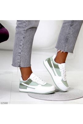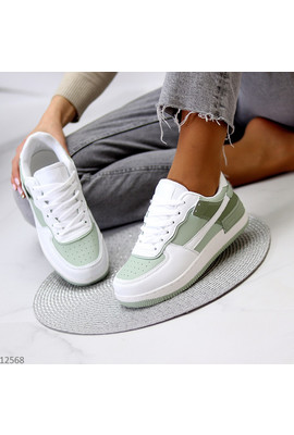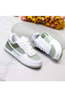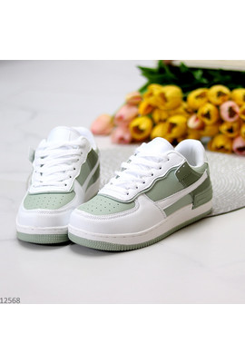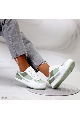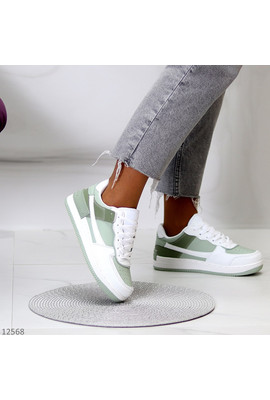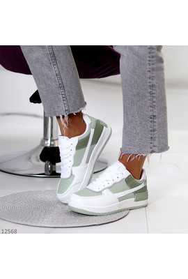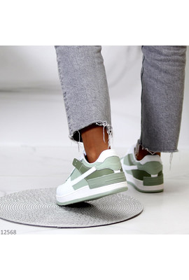 Женские кроссовки из эко-кожи Dawn 12568 белый+оливковый