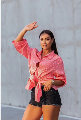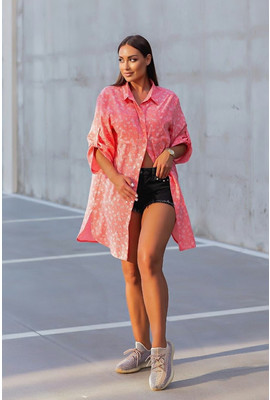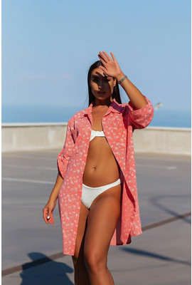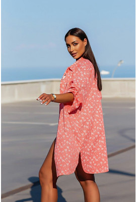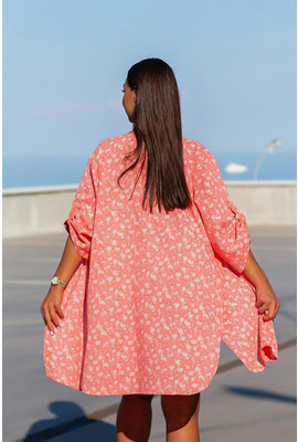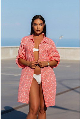 Пляжная туника-рубашка Коттон-цветочки 10151-1 коралл