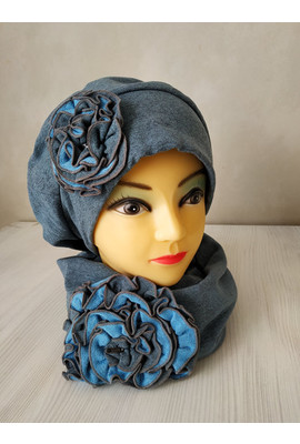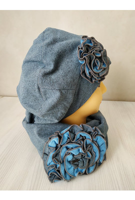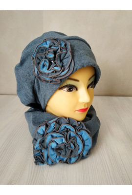 Модный и стильный комплект из берета и шарфа Глиф цвет D004 джинс
