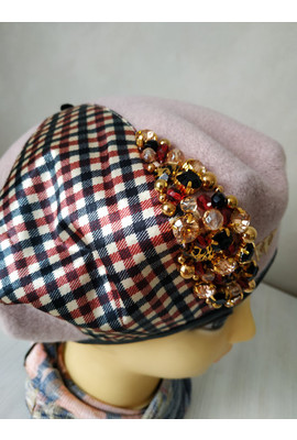 Женский берет на флисе, украшен декором ввиде нашивки и россыпью камней Swarovski.