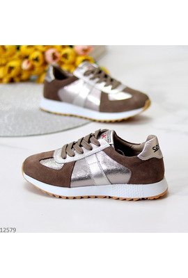 Код 12579 Размеры 36-41 Кроссовки "Show" Материал - НАТУР. КОЖА/НАТУР. ЗАМША Внутри - НАТУР. КОЖ. ПОДКЛАД Цвет - Бронза/Мокко Подошва - 2,5см/2см Производитель - Фабричный Китай На среднюю стопу Размер в размер 36-23,5 37-24 38-24,5 39-25 40-25,5 41-26.