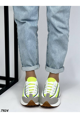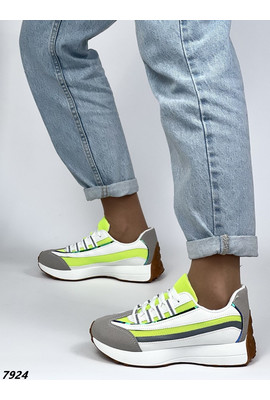 Код 7924 баш Кросівки Матеріал еко-замша + еко-шкіра + взуттєвий текстиль Колір Green На шнурівці Висота від п'яти 7,5 см Висота підошви 3 см Розмірна сітка: 36 - 23,0 см 37 - 23,5 см 38 - 24,0 см 39 - 24,5 см 40 - 25,0 см 41 - 25,5 см.